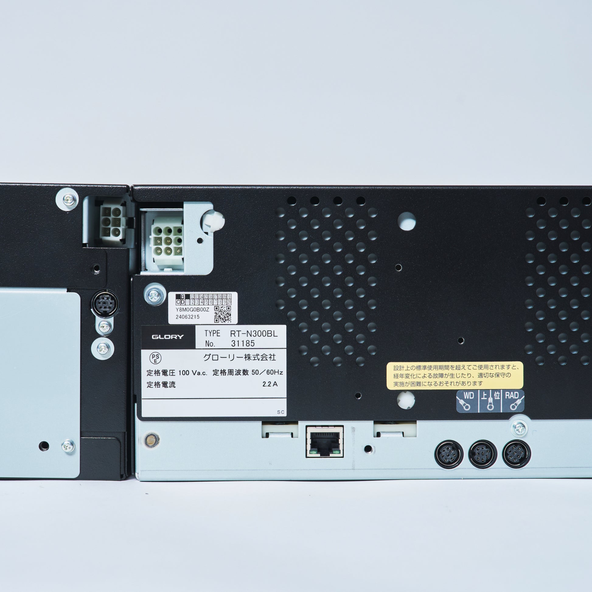 【硬貨釣銭機】 収納枚数 500円硬貨:約105枚、100円・10円・1円硬貨:各約160枚、50円・5円硬貨:各約120枚 消費電力 [RAD-N300接続時] 待機時20W 定格140W 省電力時 13W(50 / 60Hz) [RAD-N300 / WD-N300接続時] 待機時22W 定格140W 省電力時 16W(50 / 60Hz) 【紙幣釣銭機】 ドロワータイプ(WD-N300A) 500円・50円・5円:各1本、100円・10円・1円:各4本 ※500円硬貨20枚巻の場合は2本、ただし、別売アタッチメントと設定変更が必要です。 損貨収納部×1(前面スロット)、現金外収納部×1(前面スロット)、予備紙幣収納部×1(約100枚)、 予備硬貨収納部×6(各約10枚)、硬貨オーバーフロー収納箱×1(約50枚:10円硬貨換算)